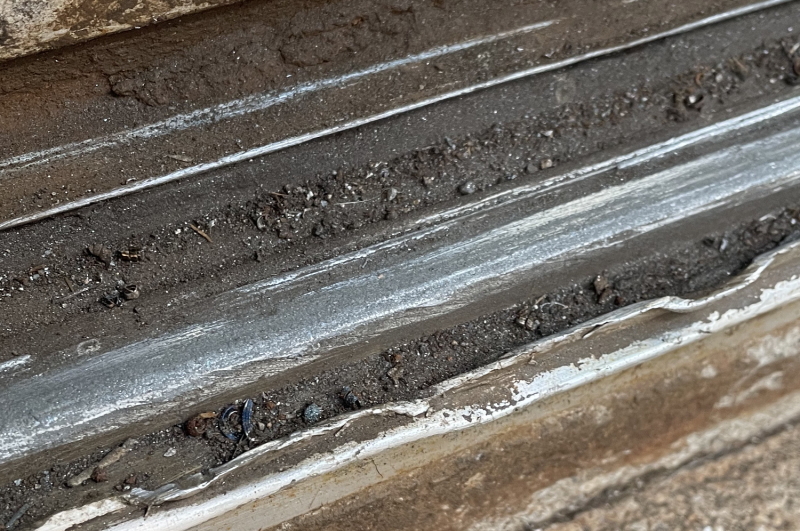 ステンレス製の車輪を使用してアルミレールを削ってレールが波打ってしまった場合や、レールの水抜きの部分がサッシの重さで潰れてへこんでしまった場合は、レールの補修を行った後にオーバーレールを取付すれば修理が行えます。レールの削れ具合やレールの損傷が酷い場合や、レールを削りすぎてレールがなくなってしまった場合、既存のレールを撤去して新しくレールを付け直しして修理することも可能です。